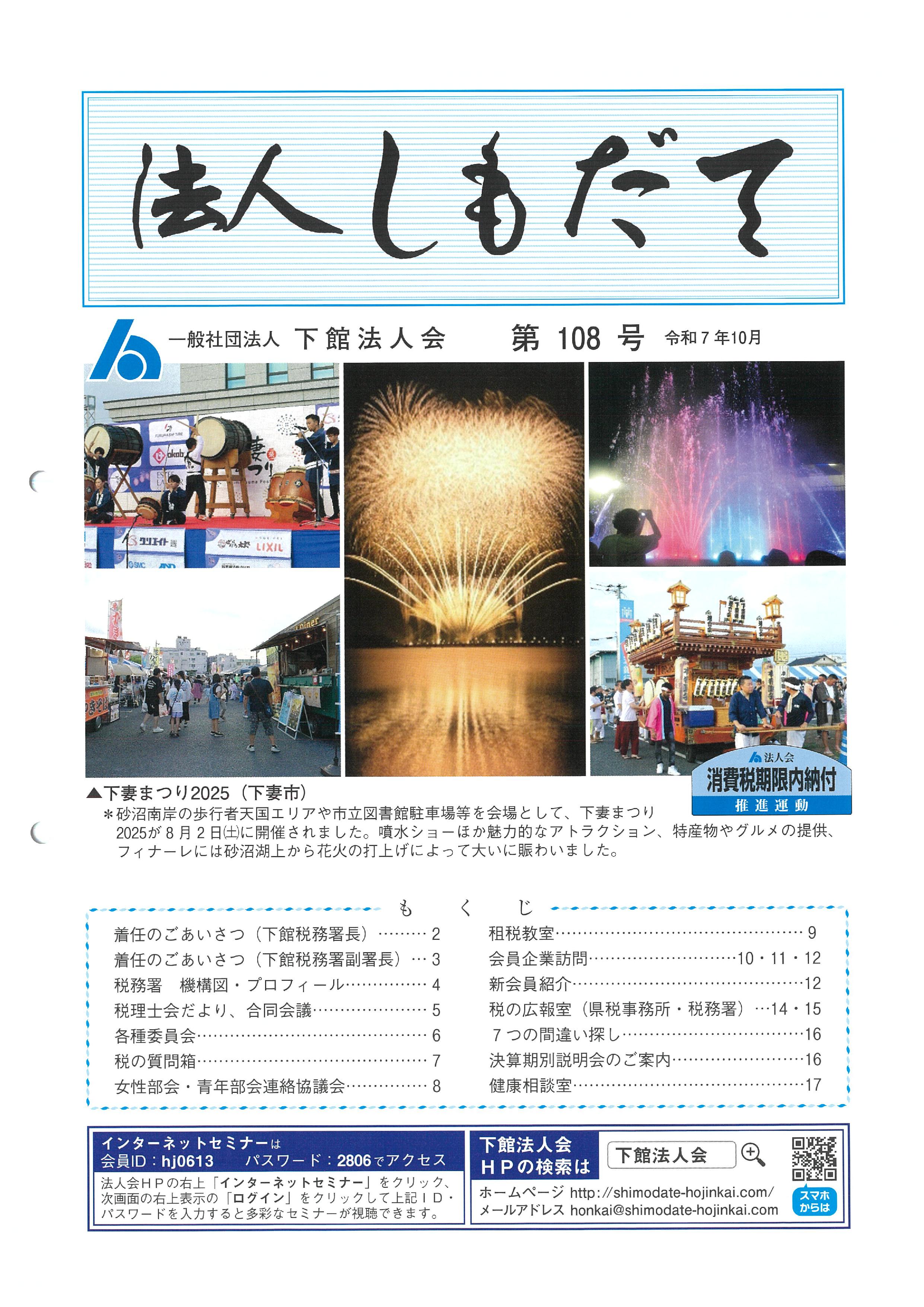 以上、下館法人会の事業活動に対しご理解、ご支援、ご協力をお願いいたしますとともに、新たな法人、個人事業主さまの入会を心よりお待ち申し上げます。